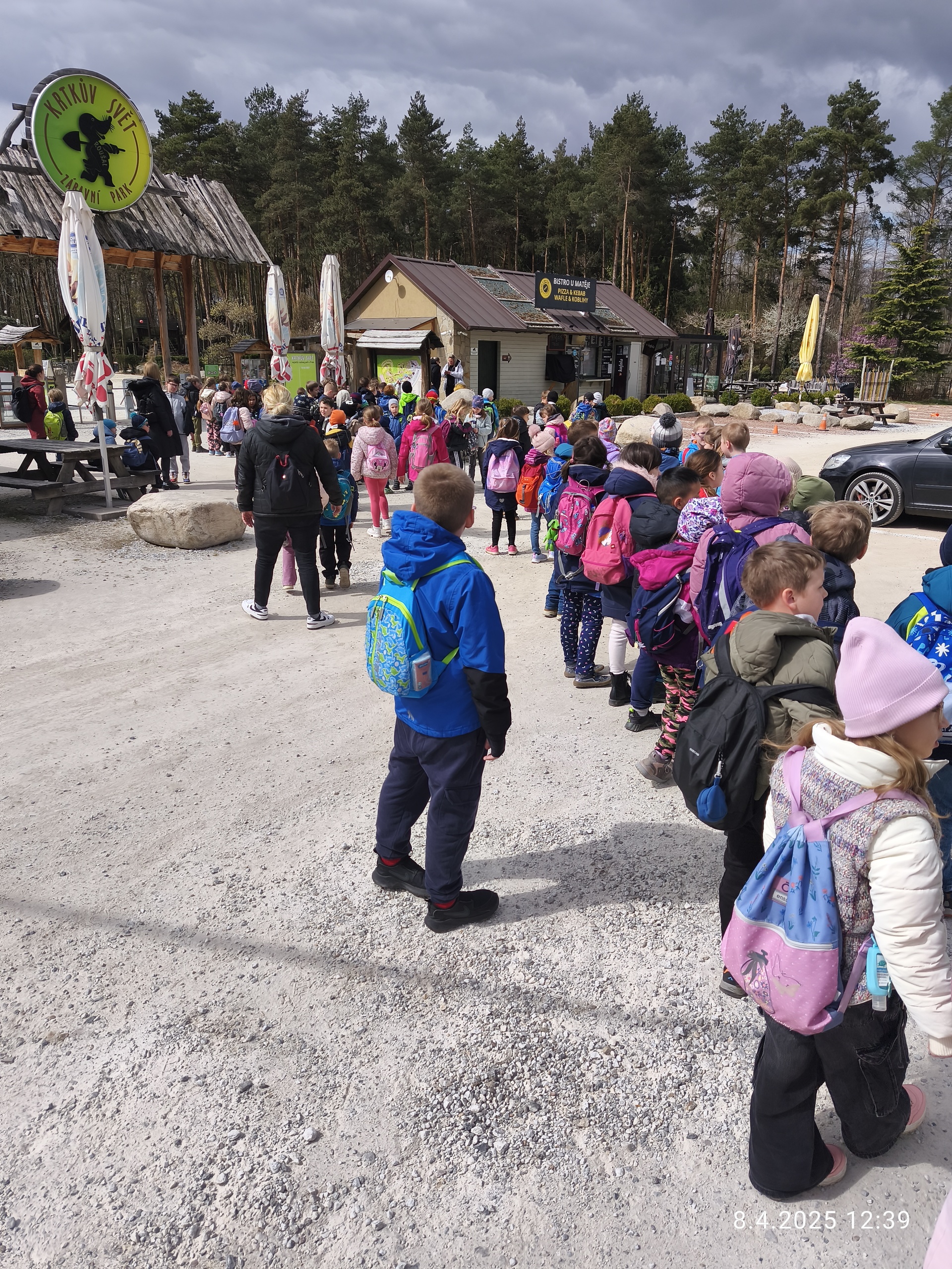 96 dětí, 5 vychovatelek a dva řidiči autobusů - to byla sestava naší výpravy. V dubnu se totiž děti školní družiny z oddělení Žirafek, Klokánků, Slůňat, Lvíčat a Opiček vydaly navštívit Krtkův svět v Praze - Měcholupech.
